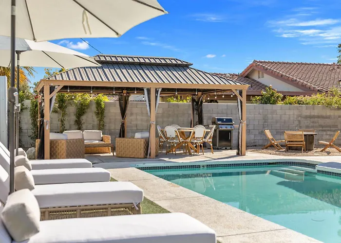 Along with access to such natural sites as Shields Date Garden, approximately 15 minutes' drive away, the 2-bedroom Rather Be Desert Getaway offers an outdoor pool area. Providing guests with Wi-Fi and a free private car park, the villa is at a distance of 4.5 km from Sprouts Farmers Market.